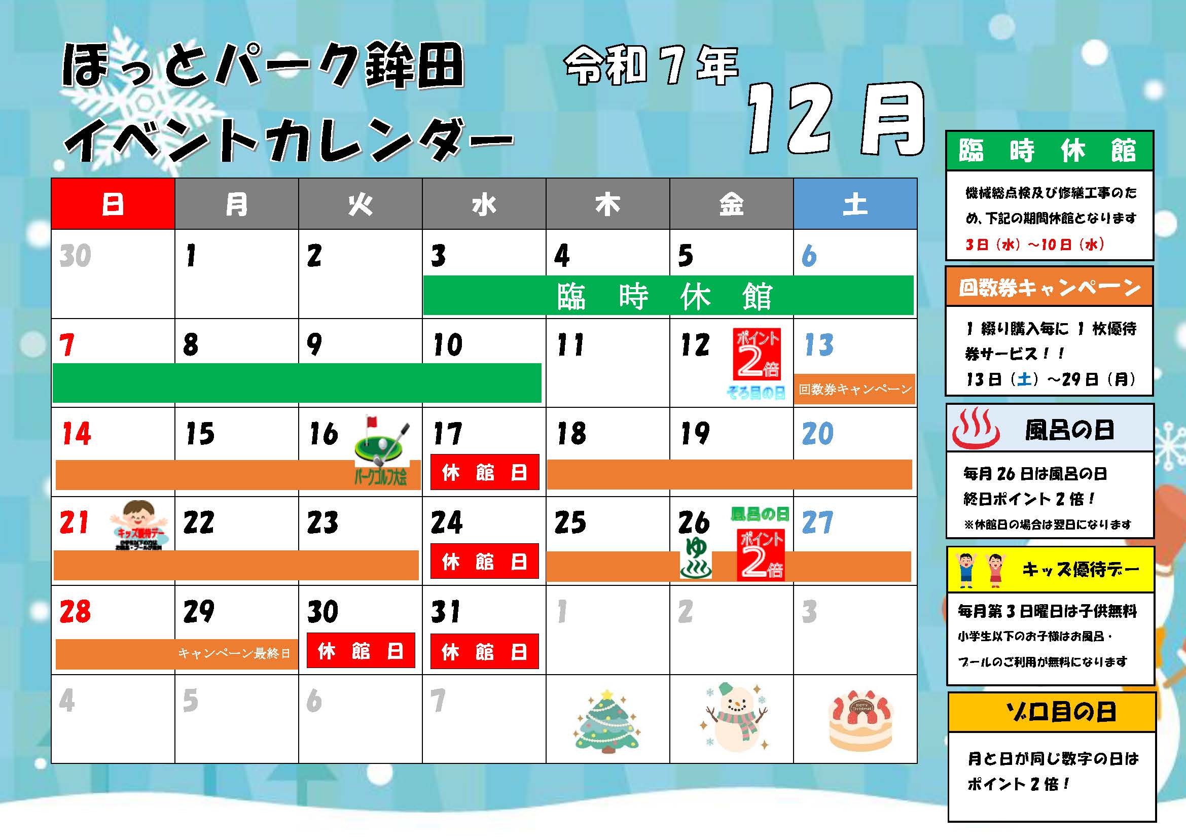 2025年12月のイベントカレンダーを更新しました。